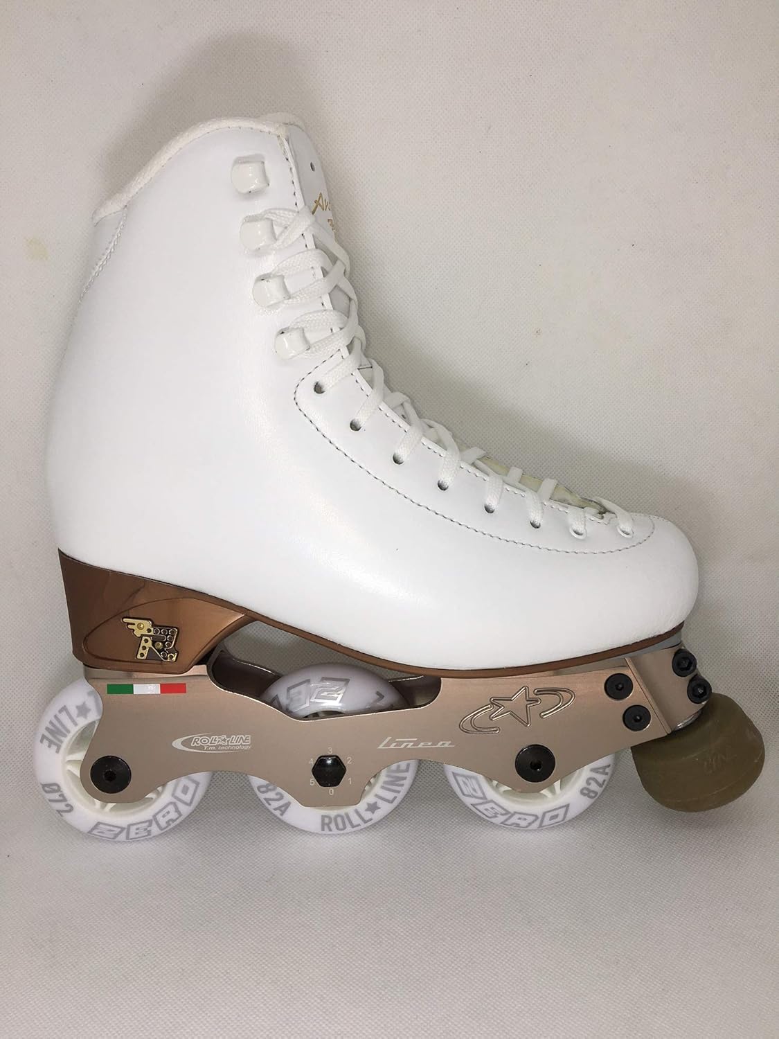 Die Schuhe sind gleich wie Kunstlaufschlittschuhe aufgebaut. Statt der Kufen haben drei Rollen, die etwas uneben aufgehängt sind und so alles an Kunststücken erlaubt (Salchow, Rittberger, etc), was es auch im Eis gibt.